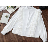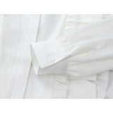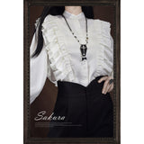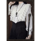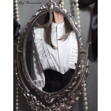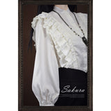 優雅で気品ある貴公子みたいに演出してくれるブラウス。高めのスタンドカラーとフロントのボリューミーなダブルフリルが特徴的なヴィクトリアンスタイル。肩から胸元にかけて立体的に施されたフリルが、華やかで存在感のある印象を醸し出しています。