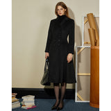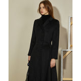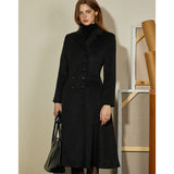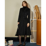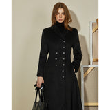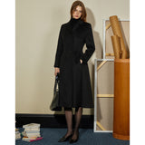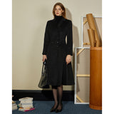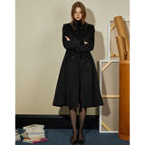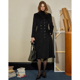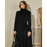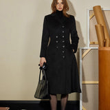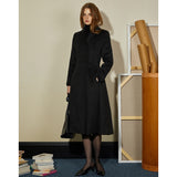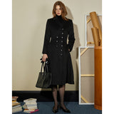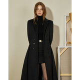 1990年代を彷彿とさせるロングシルエットのブラックのウールコート。フロントに並ぶダブルブレストのボタンがクラシックな印象を与え、スタイリッシュで洗練されたデザイン。長めの丈感がエレガント。時代を映し出すモダニティをあなたに。