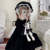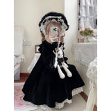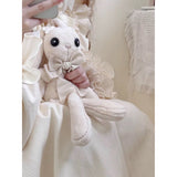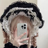 ロココ調の優美さを現代に映したボンネットとペチパンツとぬいぐるみ。ワンピースの裾から覗くレースのペチパンツは、ドールライクな世界観を完成させています。天使のように可憐でありながら、どこか幻想的で非日常を感じさせる特別なアイテム。