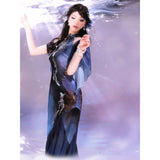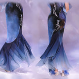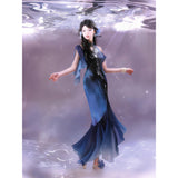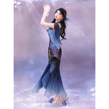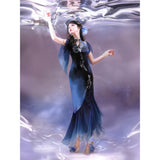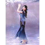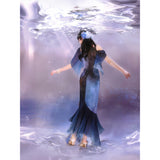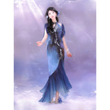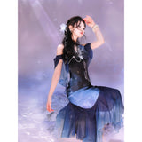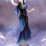 宇宙の秘密を点で綴る星座(魚座)からインスピレーションを得たチャイナワンピース。彼方に広がる紺青の銀河、神秘なる深海。美しく揺れるマーメイドシルエットは、まるで波紋のように輝きます。澄んだ美しさを静かに湛えた神秘の世界に誘われてみて。