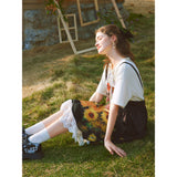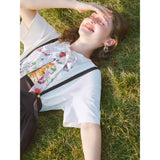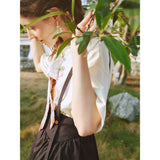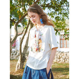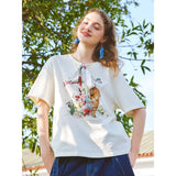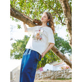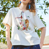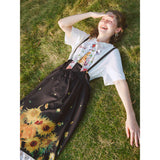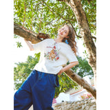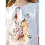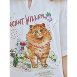 ゴッホが描いた『バラとアネモネの日本の花瓶』と、くりんとしたお目目が可愛らしい子猫を組み合わせたTシャツ。首元でリボンを結べるようになっています。カジュアルなボトムスと合わせて、アートな一着を堪能してみて。