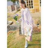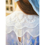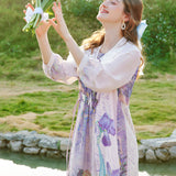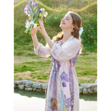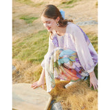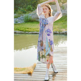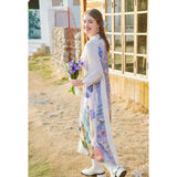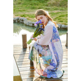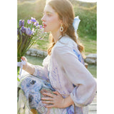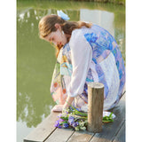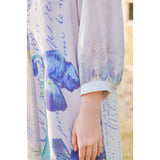 ゴッホが描いた『バラとアネモネのある日本の花瓶』と『アイリス』を組み合わせたワンピース。取り外し可能な透け感のある付け襟には美しい刺繍が装飾されています。ふわりと揺られる姿がロマンティック。やわらかな光に満たされた美しき世界へ。