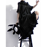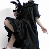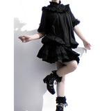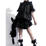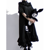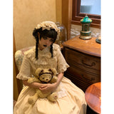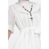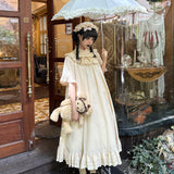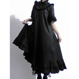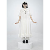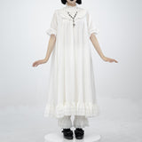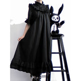 大人になることを拒み、少女の心を守り続ける永遠の少女性。繊細で美しいドールみたいに演出してくれるルームワンピース。ネックラインや袖口、裾部分には存在感のあるフリルやレース刺繍が装飾されています。退廃的な独特の美しさを堪能してみて。