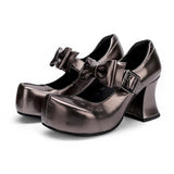 Comic Girl Round Toe Heel Shoes - Latte Silver