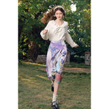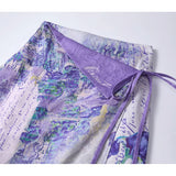 ゴッホが描いた『バラとアネモネのある日本の花瓶』にオマージュを捧げるスカート。『テオへの手紙』を組み合わせたデザインで、クラシカルでロマンティックな印象を与えます。ウエスト部分にはラップ風のディテールがあり、立体感をプラスしてくれる。
