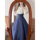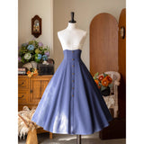 クラシカルなエレガンスを現代に映したハイウエストなフレアスカート。フロントに並ぶボタンが端正な印象を与え、背面のレースアップがウエストラインを美しく際立たせます。しなやかに広がるシルエットは、歩くたびに柔らかく揺れ、上品な存在感を放ちます。気品とレトロモードが融合した、洗練されたヴィクトリアンスタイル。