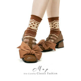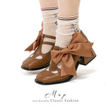 “これを履いて、行きたい場所へどこまでも”という想いを込めたメリージェーンシューズ。足元を華やかに彩る大きなリボンが、つま先部分に存在感たっぷりにあしらわれています。クラシック感を引き立てる丸みのあるトゥが特徴的。甘くもあり、どこかノスタルジックな空気を醸し出しています。