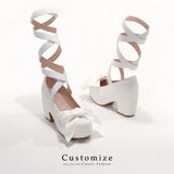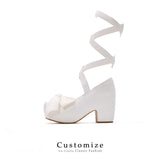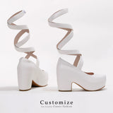 Ribbon Strap Platform Heel Pumps - White[2025年10月下旬-11月中旬発送予定]