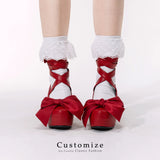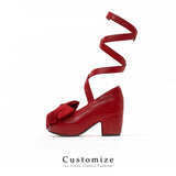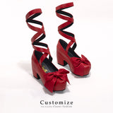 Ribbon Strap Platform Heel Pumps - Red[2025年10月下旬-11月中旬発送予定]