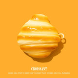 焼きたてクロワッサンのAirPodsケース。一見すると本物のパンと見間違うほどリアルな、ふっくら焼き上げられたクロワッサン。こんがりとしたグラデーションと艶やかな質感が、美味しそうな香りまで感じさせるユニークなデザイン。
