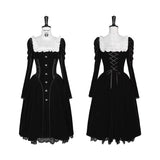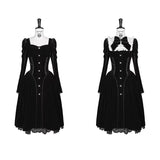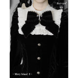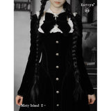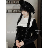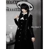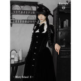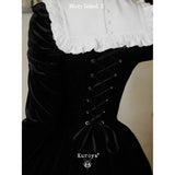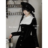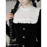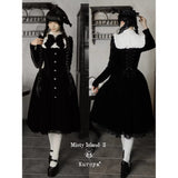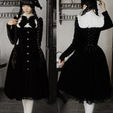 静寂に包まれた古い洋館に住む令嬢を思わせる、耽美で神秘的なベルベットワンピース。長いスカート丈とレースの裾がヴィクトリア朝の喪服やゴシック文学のヒロインを連想させます。白地の付け襟は取り外しが可能となっており、バック人は編み上げが装飾されています。ゴシックロリータの世界観、ヴィクトリア朝の少女像、そして“光と闇”という対になる存在をテーマにしたお洋服。