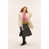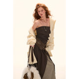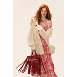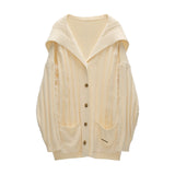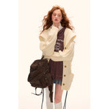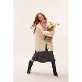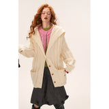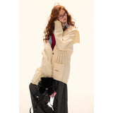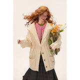 大きめのセーラーカラーがついた、ゆったりシルエットのロングカーディガン。縦に入ったリブ編みが全体をすっきりと見せつつ、両袖には毛糸のフリンジが施され、動きのある表情をプラスしています。大きめのポケットとフロントボタンがカジュアルさを添え、リラックス感のある雰囲気とモード感を兼ね備えた一枚。