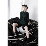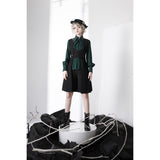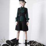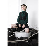ウエスト部分に編み上げを装飾したロングベスト。ダークなブラウスやパンツと合わせると、ミステリアスな雰囲気が漂います。ボーイッシュな騎士コーデの出来上がり。騎士物語の世界に誘われてみては。