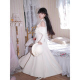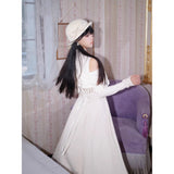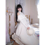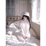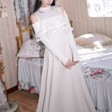 歩みや佇まいの一瞬一瞬に余韻を残しながら、どこか物語の途中に立ち止まったかのような、静謐で詩的な存在感を漂わせているワンピース。肩先をそっと覗かせるカットが、控えめな官能と品格を同時に語りかけます。身体の線に沿って落ちる滑らかなシルエットは裾に向かって静かに広がります。