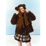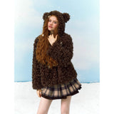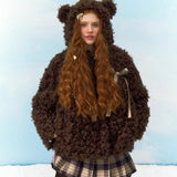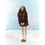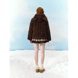どこかノスタルジックな雰囲気が漂い、雪の中を駆ける童話の主人公のような無邪気さを演出してくれるフェイクファーコート。まるで雪の森に住む小さなクマのような愛らしさを纏う一着。ふわふわとカールしたチョコレートブラウンの毛並みが、ぬいぐるみのように柔らかく温もりを感じさせます。