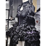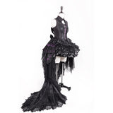 堕天の貴族の刺繍トップスとスカートとトレーンとボンネット - Black Purple[2026年10月上旬-11月上旬発送予定]