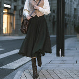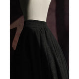 知的でありながら温もりを感じさせる、物語を纏うようなクラシックウールスカート。深みのあるチャコールブラックのツイード生地には、微細なカラーネップが散りばめられ、まるで夜空に瞬く星々のように上品な煌めきを放っています。ウエストラインはすっきりと整えられ、裾にかけてふんわりと広がるシルエットが、歩くたびに優雅な余韻を描きます。古いヨーロッパの街角を思わせるノスタルジックな佇まいに。