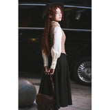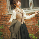 知性と優雅さを纏いながら、街角を軽やかに歩く──まるで物語の主人公のような、トラッドベスト。クラシカルな英国紳士服のエッセンスを、女性の柔らかなシルエットに落とし込んだ一着。ブラウンのチェック柄に細やかな織りが光を受けて奥行きを生み、肩からウエストにかけてのラインが上品に身体を包み込みます。襟元の丸みやボタンの配置には、古き良きヴィクトリア時代の気配が漂い、どこか文学的な香りを感じさせます。
