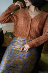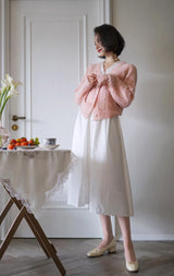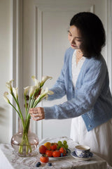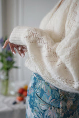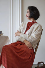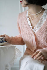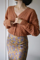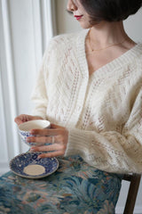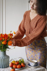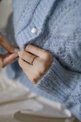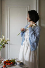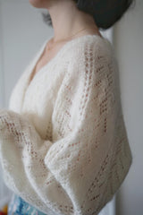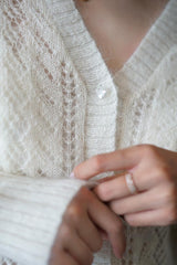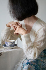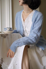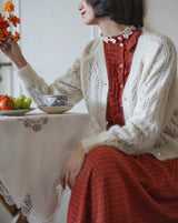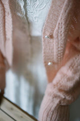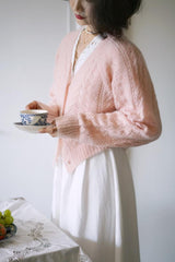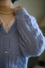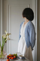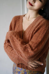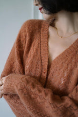 ゆるっとしたルーズ感のあるモヘアニットのカーディガン。カジュアル過ぎず大人な女性らしい印象を与えてくれる。ふわっとしたモヘアタッチは、柔らかく、あたたかみのある雰囲気。ワンピースなどと合わせても綺麗。