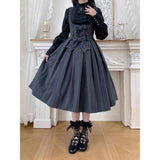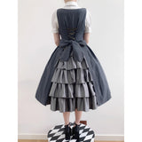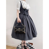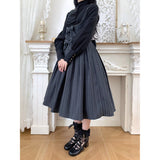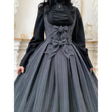 西洋令嬢の縦縞クラシカルジャンパースカート - Gray[2026年1月上旬-1月下旬発送予定]