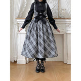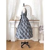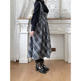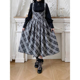 ノスタルジックな英国のお嬢様を思わせるアンティーククラシカルなジャンパースカート。ウール調のチェック生地が柔らかなぬくもりを感じさせ、クラシカルなシルエットが優雅に広がります。ウエストの大きなリボンは、まるで時を忘れた少女の秘密を結ぶように静かに佇んでいます。