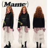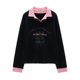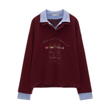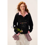 知的で可憐、そして少しレトロな香りを纏う、都会的なプレッピースタイルのドッキングスウェット。異素材で切り替えられた襟と袖口の配色が、レイヤードしているような立体感を生み、シンプルながらスタイリングに奥行きを与えています。フロントにはヨーロピアンな建物のグラフィックとロゴ刺繍が施され、ノスタルジックな雰囲気を漂わせながらもカジュアルなムードをキープしています。