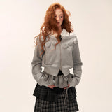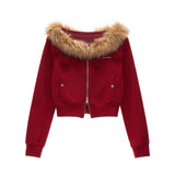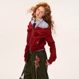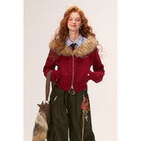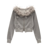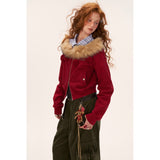 濃厚な色香と妖艶な姿から漂う、燃え上がる情熱の象徴である薔薇の花が施されたスウェットジャケット。襟ぐりを囲むふわふわのフェイクファーが華やかな雰囲気を醸し出しています。ややコンパクトな丈感がスタイル全体を引き締め、ワイドパンツやプリーツスカートとの相性も抜群。甘さとモードが絶妙に溶け合う、この冬の主役級アイテム。