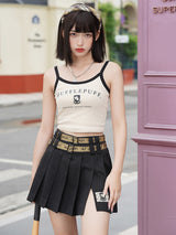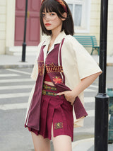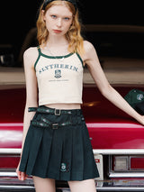 ハリーポッター×KYOUKOによる公式コラボアイテム。魔法魔術学校の制服をイメージしたショート丈のプリーツスカート。ウエストベルトを二段重ねて巻いたデザインとなっています。裾部分には紋章が刺繍されています。ショート丈のトップスと合わせて、キュートで愛らしい魔法少女に。ファンタジーの世界へようこそ。
