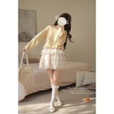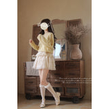 ロマンティックでドリーミーなお嬢様みたいな雰囲気のニットトップスとスカート。トップスは、ふんわりとした透け感のあるエアリーなニットとなっています。スカートは、ボリュームのあるフリルティアードで、シフォンの透け感が軽やかさをプラスしてくれる。ガールに戻れるキュートなアイテム。