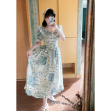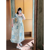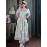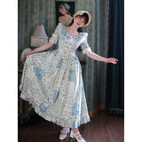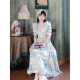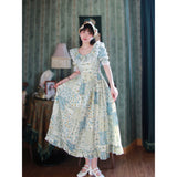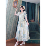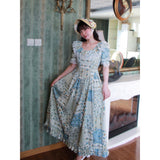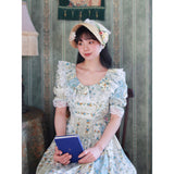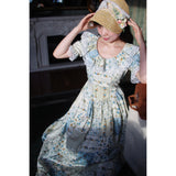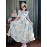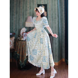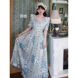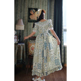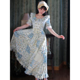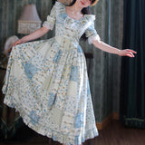 レトロなカントリー調のパッチワーク柄のワンピース。絢爛に咲き誇る花々と格子柄を組み合わせたデザイン。胸元と袖に、繊細な白レースのフリル装飾が施され、フェミニンでノスタルジックな雰囲気。ウエスト位置が高く、たっぷりギャザーが入ったスカート部分は動くたびにふんわり広がります。
