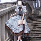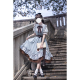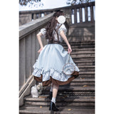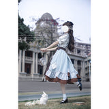 甘やかなファンタジーの世界に誘われたみたい。ロマンティックが加速するクラシカルなジャンパースカートとブラウス。ジャンパースカートは、ライトブルーの色合いをベースに、フリルやパッチワークの装飾が施され、優雅で可愛らしいデザインとなっています。予想外の遊び心に魅了されて。
