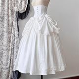 美しさと気品を兼ね備えた伯爵令嬢みたいに演出してくれるコルセットスカート。上品で洗練された雰囲気を醸し出し、高い品格を感じさせるヴィクトリアンスタイル。ウエストを引き締める高めのコルセットが特徴で、フロントにはボタンが並んでいます。スカート部分は、上品なレースとフリルが施されたデザインで、豪華な雰囲気を醸し出しています。プリーツが入ったオーバースカートがドレッシーな印象を与え、エレガントでクラシックなシルエットを作り出しています。
