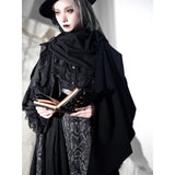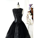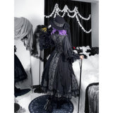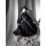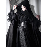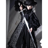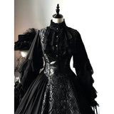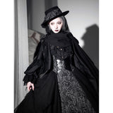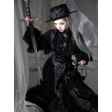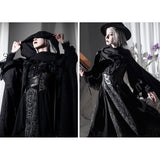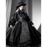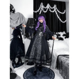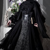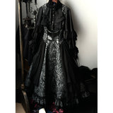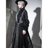 神秘的な“龍骨の墓園”をテーマにしたダークで優雅なジャンパースカート。ウエスト部分にコルセットを組み合わせたようなデザインは、美しいシルエットを演出してくれる。裾部分には、光沢のある蛇柄が施されており、サイドには、不規則なカッティングと流れるようなドレープが特徴的なテクスチャが装飾されています。幻想的かつ退廃的な世界観を表現したアイテム。
