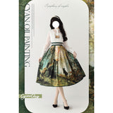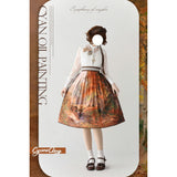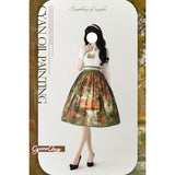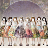 胸が高鳴る特別な瞬間を油彩画で描いた刺繍フレアスカート。ロマンスの香りに誘われて、迷い込んだ美しき幻想世界。そこは、優しい光に満ちた幻惑の楽園。ウエスト部分にはレース刺繍が装飾されており、ふわりと膨らむ姿がエレガント。