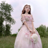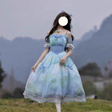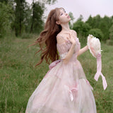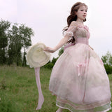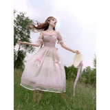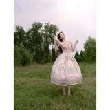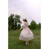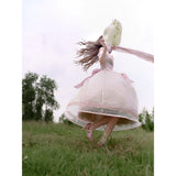ヴィクトリア時代の庭園を歩く令嬢を彷彿とさせるジャンパースカート。ジヴェルニーのモネの庭に咲いた睡蓮にオマージュを捧げるアイテム。透け感のあるチュールが重なり、幻想的な絵画が浮かび上がってくるみたい。バストからウエストにかけてのしっかりとした切り替えがコルセット風のラインを描き、クラシカルで上品なシルエットを生み出します。やわらかな光に満たされた美しき風景は幻想的。