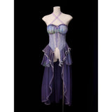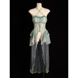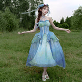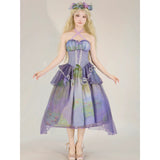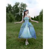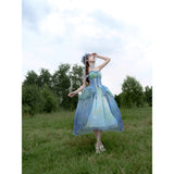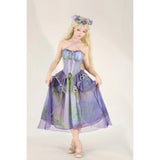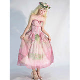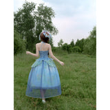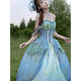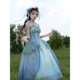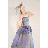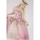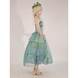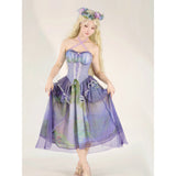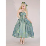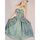 ヴィクトリア時代の庭園を歩く令嬢を彷彿とさせるビスチェとスカート。ジヴェルニーのモネの庭に咲いた睡蓮にオマージュを捧げるアイテム。ビスチェはウエスト部分にはレースがあしらわれ、クラシカルで優美な印象を際立たせています。ショルダーストラップはリボン状に首元でクロスし、首元を華やかに引き立てています。スカートは、ふわりと重ねられたチュールが光を受けて柔らかく揺れます。やわらかな光に満たされた美しき風景は幻想的。