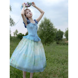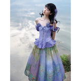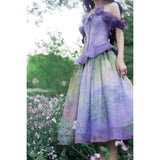 睡蓮の池の油彩画ビスチェとスカート - Ver2