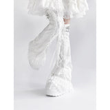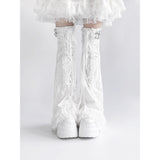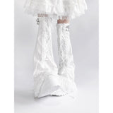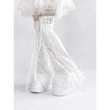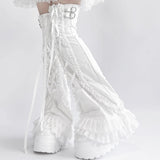White Frill Lace-up Leg Warmers