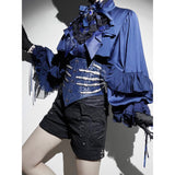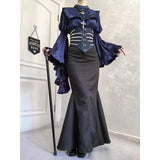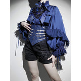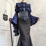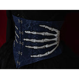 解剖学や標本、病理的な美しさに着想を得たコルセット。浮かび上がる手骨。それはまるで遺された美の痕跡がワルツを奏でるかのような、静かで劇的な存在感を放ちます。ゴシックでダークな幻想の世界を纏ってみて。