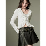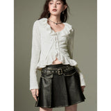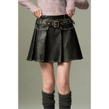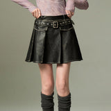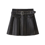 ガールに戻れるキュートでレトロなレザーのベルトプリーツスカート。映画のヒロインの気分で1980年代に思いを馳せて。重厚感のあるデザインながらも、程よくカジュアルダウンできて、可愛らしさも兼ね備えています。