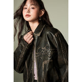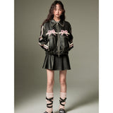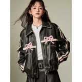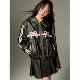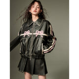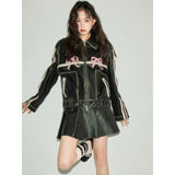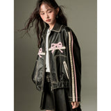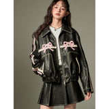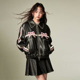 ガールに戻れるキュートなリボンが描かれたレトロなレザージャケット。映画のヒロインの気分で1980年代に思いを馳せて。重厚感のあるデザインながらも、程よくカジュアルダウンできて、可愛らしさも兼ね備えています。