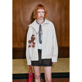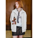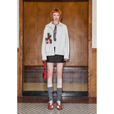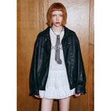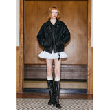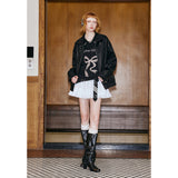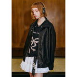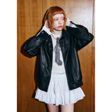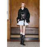 ガールに戻れるキュートなリボンが刺繍されたレザージャケット。リボンと合わせて”Girls Club Vintage 1993”と刺繍されています。ボリュームのある袖と、裾や袖口のリブディテールがポイント。ヴィンテージ感と現代的なエッジが融合したアイテム。