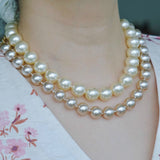永遠の美しさを表現した王侯貴族のためのガラスパールの首飾り。やわらかな光沢感と艶めきに魅了される。運命に引き寄せられるように眩しく放たれるエレガントなアイテム。愛らしく気品を漂わせて。
