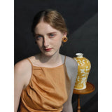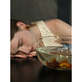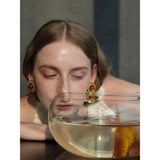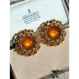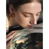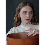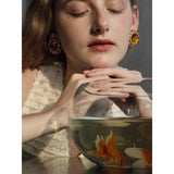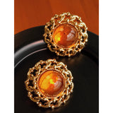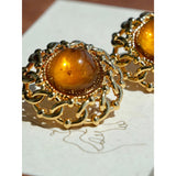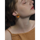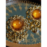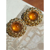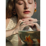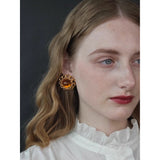 甘やかで芳醇な薫りに満ちた貴腐ワインのような色合いの耳飾り。丸みのある大粒のに金色が縁取られており、中世ヨーロッパの王妃みたいに演出してくれる。眩しく放たれる輝きは、日常に落とし込んだプリンセススタイル。