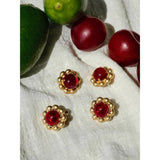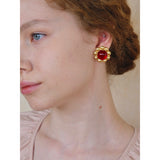 森の宝石と呼ばれる木苺みたいな耳飾り。透明感のある真っ赤な丸みを帯びたフォルム。縁には金色が彩られており、高貴な雰囲気が漂います。存在感がありながらも、派手になり過ぎないアイテム。さりげなく優雅に視線を奪って。