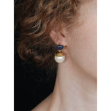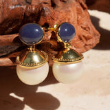 ドイツ・ノイシュヴァンシュタイン城にオマージュを捧げる耳飾り。城の優雅な白い外観が白鳥を連想させるおとぎ話の城。深みのある紺と、艶やかなパールの組み合わせが絶妙。さりげなく優雅に視線を奪って。