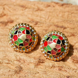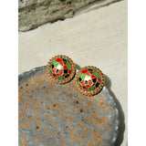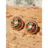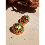 東西の文化が出会い、融合して生まれた独特の美を表現した耳飾り。光を受けて輝く宝石が、無限に変化する宝石の万華鏡。色とりどりのスパイスが織りなす、刺激的で豊かな色彩の饗宴。色彩が奏でるシンフォニーで視線を奪って。