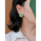 凛として咲き誇り、静かに季節を謳う蓮の花の耳飾り。透明感のある青みがかった色彩は、凍てついた美しさを表現しており、幻想的な世界を映し出しています。汚れを知らぬ美しさを放つ存在感のあるアイテム。