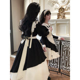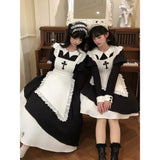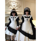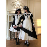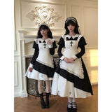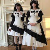 優雅で上品なメイドのお嬢様みたいに演出してくれる。肩部分に膨らみがあるデザインで、付け袖をつけることで、長袖になります。エプロンには十字架が刺繍されており、肩部分にフリルの刺繍レースがあしらわれています。ふわりと膨らむスカート部分が愛らしい雰囲気たっぷり。メイド気分を謳歌してみて。