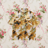 西洋の明確な線描を優雅に拒絶する、曖昧さという名の哲学。完成という概念を水の力で解体し、過程こそが真実だと囁く、滲んだ花の彩墨画シャツ。デニムなどカジュアルなボトムスと合わせてみて。